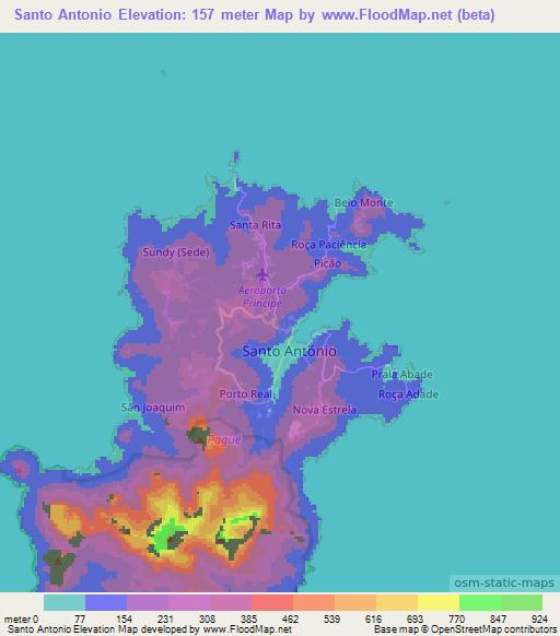 Note:Please note that Santo Antonio,Sao Tome and Principe Elevation Map is in beta.