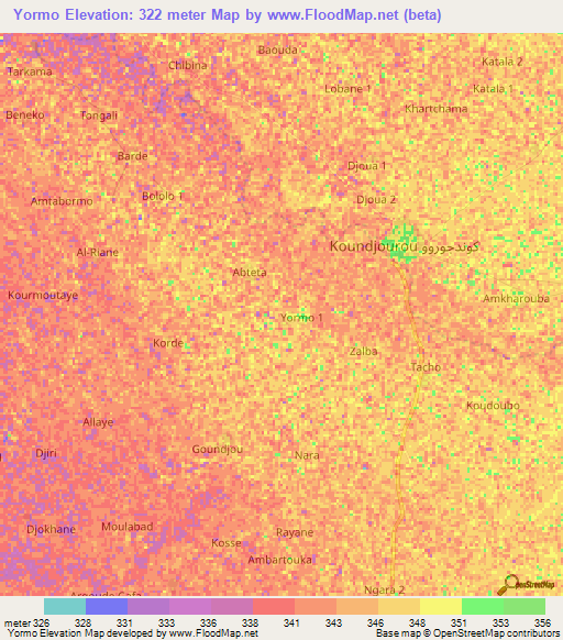 Note:Please note that Yormo,Chad Elevation Map is in beta.