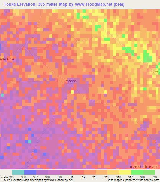Touka,Chad Elevation is 305 meter