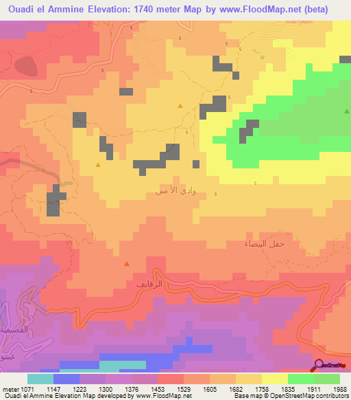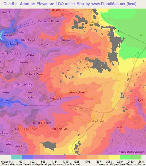 Note:Please note that Ouadi el Ammine,Lebanon Elevation Map is in beta.