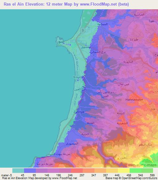 Ras el Ain,Lebanon Elevation Map is displayed at different zoom levels.