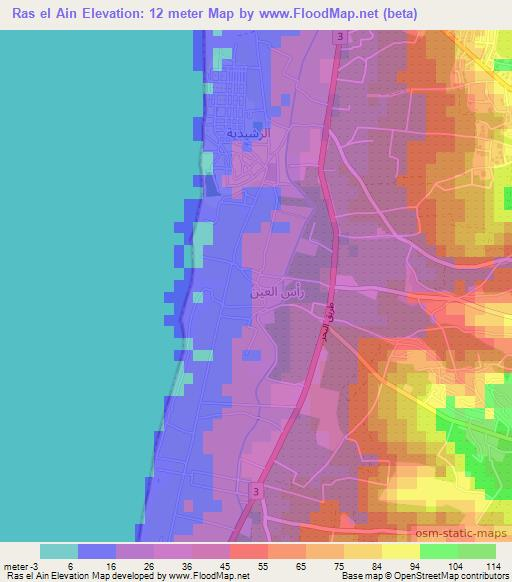 Note:Please note that Ras el Ain,Lebanon Elevation Map is in beta.