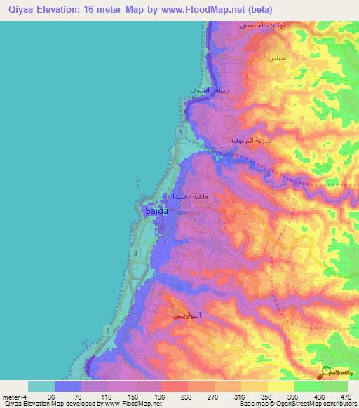 Note:Please note that Qiyaa,Lebanon Elevation Map is in beta.