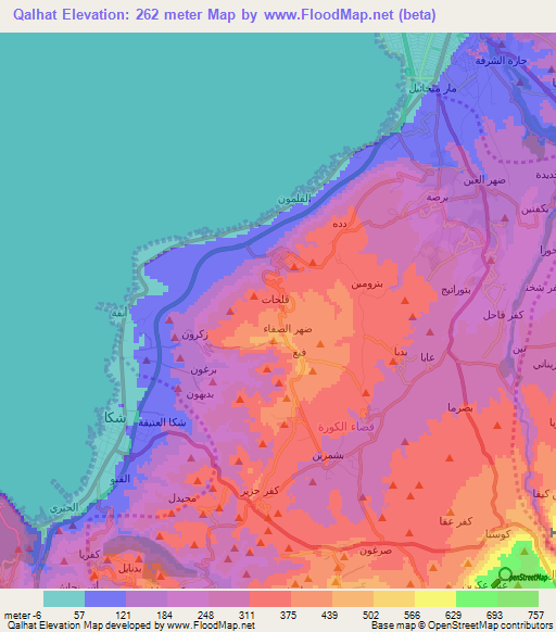 This Qalhat,Lebanon Elevation Map is licensed under CC BY-SA.