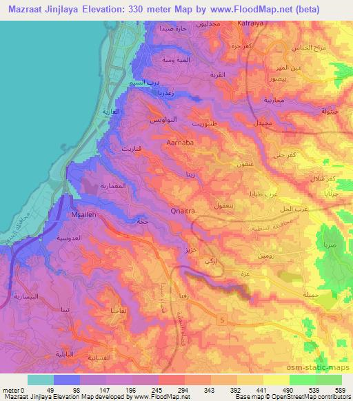Note:Please note that Mazraat Jinjlaya,Lebanon Elevation Map is in beta.