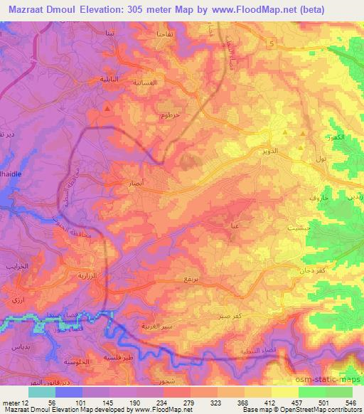 Note:Please note that Mazraat Dmoul,Lebanon Elevation Map is in beta.