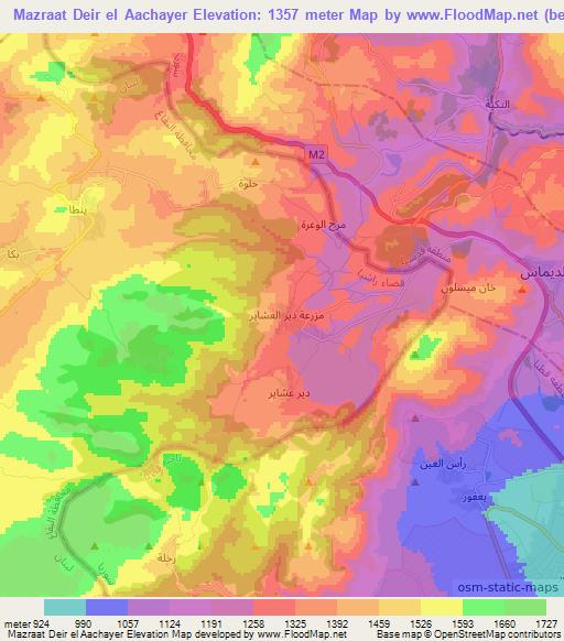 Note:Please note that Mazraat Deir el Aachayer,Lebanon Elevation Map is in beta.