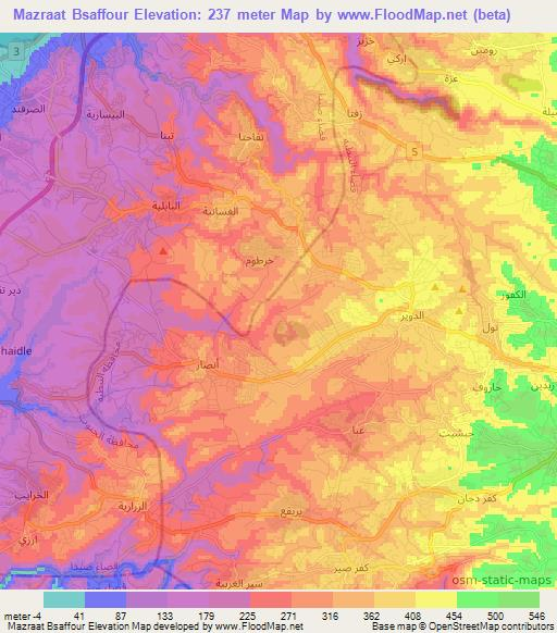Note:Please note that Mazraat Bsaffour,Lebanon Elevation Map is in beta.