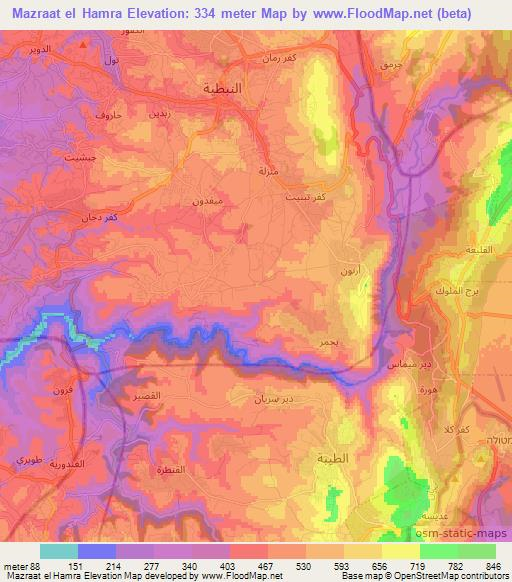 Note:Please note that Mazraat el Hamra,Lebanon Elevation Map is in beta.