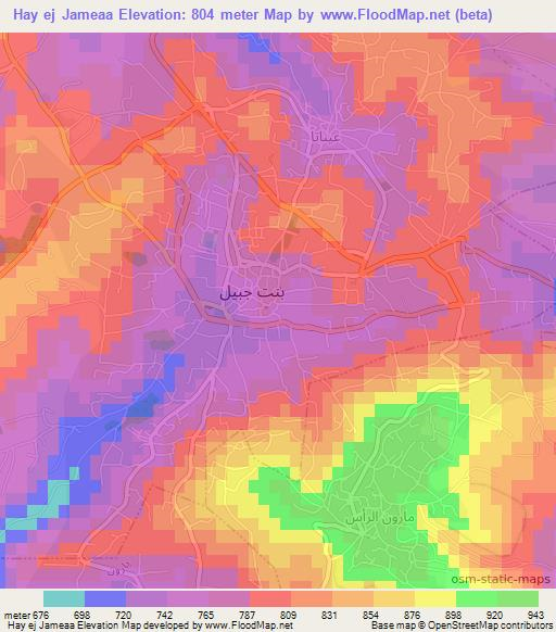 Note:Please note that Hay ej Jameaa,Lebanon Elevation Map is in beta.