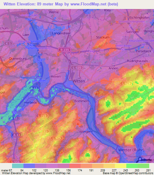 Note:Please note that Witten,Germany Elevation Map is in beta.