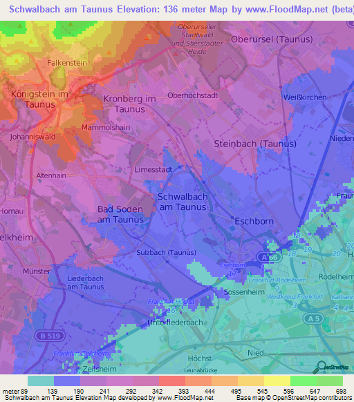 Note:Please note that Schwalbach am Taunus,Germany Elevation Map is in beta.