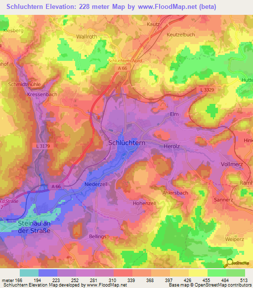 Note:Please note that Schluchtern,Germany Elevation Map is in beta.