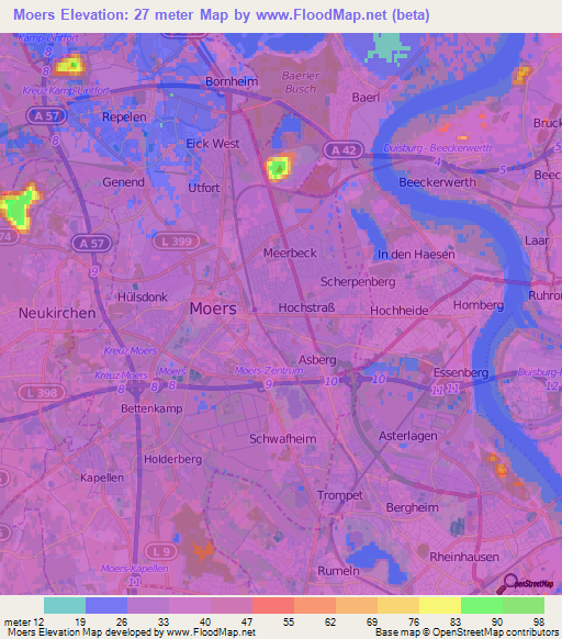Note:Please note that Moers,Germany Elevation Map is in beta.