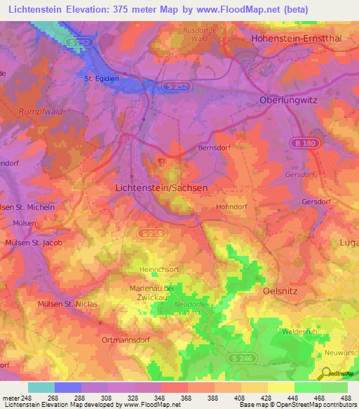 Note:Please note that Lichtenstein,Germany Elevation Map is in beta.