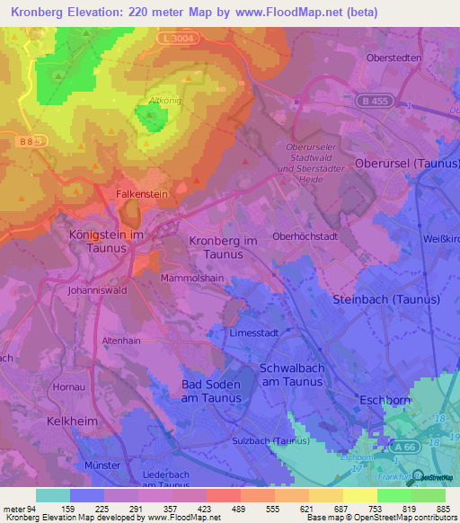 Note:Please note that Kronberg,Germany Elevation Map is in beta.