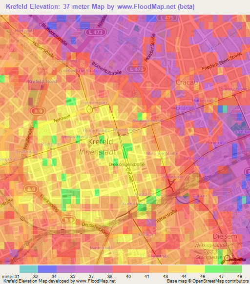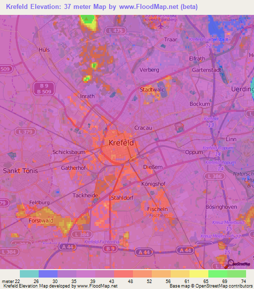 Note:Please note that Krefeld,Germany Elevation Map is in beta.
