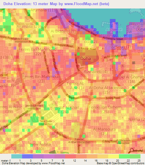 Note:Please note that Doha,Qatar Elevation Map is in beta.