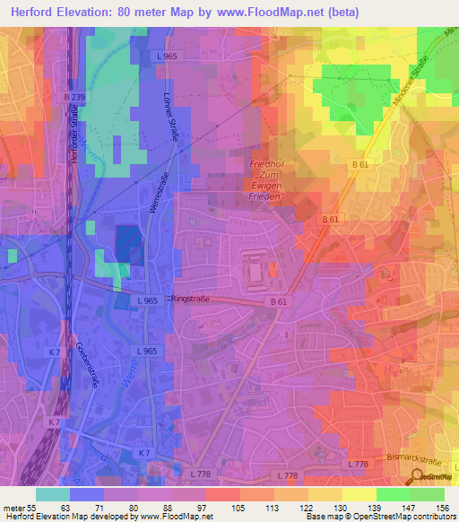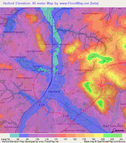 Note:Please note that Herford,Germany Elevation Map is in beta.