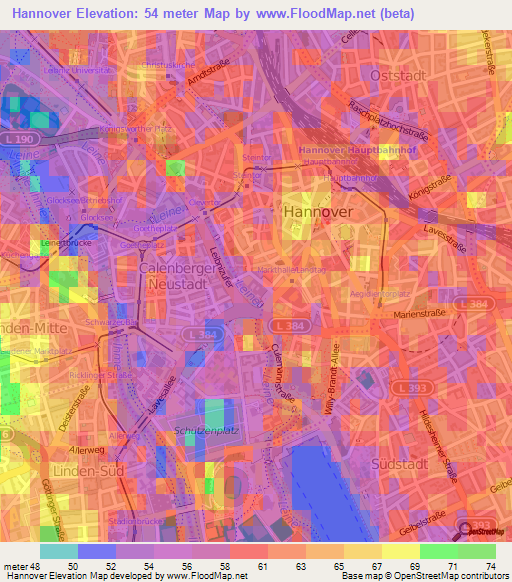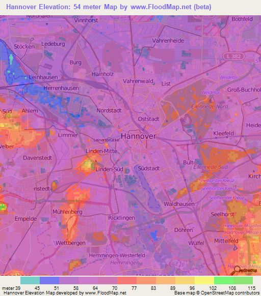 Note:Please note that Hannover,Germany Elevation Map is in beta.