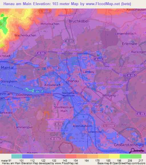 Note:Please note that Hanau am Main,Germany Elevation Map is in beta.