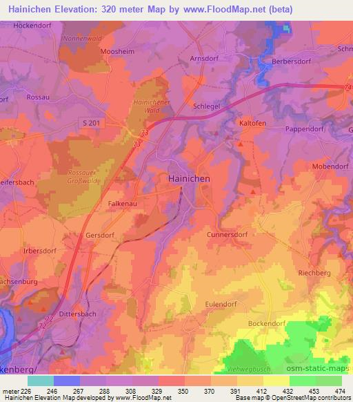 Note:Please note that Hainichen,Germany Elevation Map is in beta.