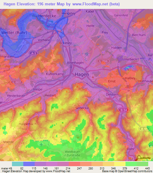 Note:Please note that Hagen,Germany Elevation Map is in beta.