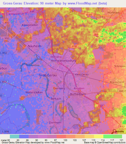 Note:Please note that Gross-Gerau,Germany Elevation Map is in beta.
