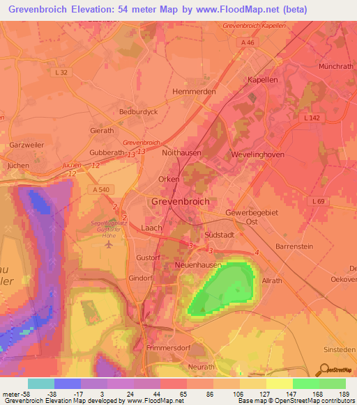 Note:Please note that Grevenbroich,Germany Elevation Map is in beta.