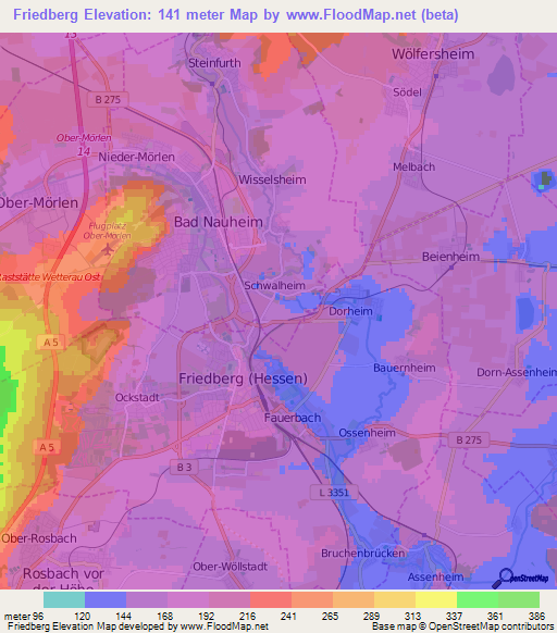 Note:Please note that Friedberg,Germany Elevation Map is in beta.