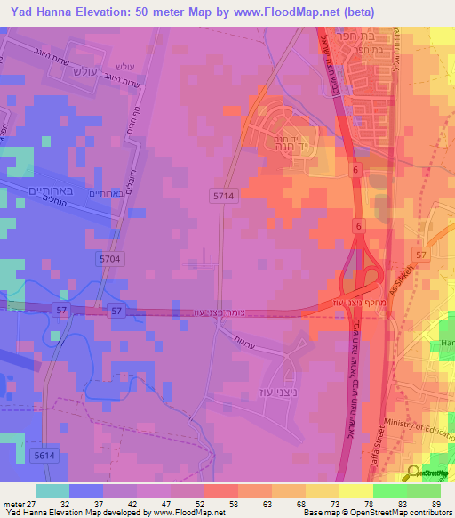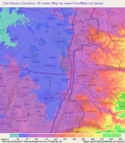 Below is the Elevation map of Yad Hanna,Israel, which displays range of elevation with different colours.