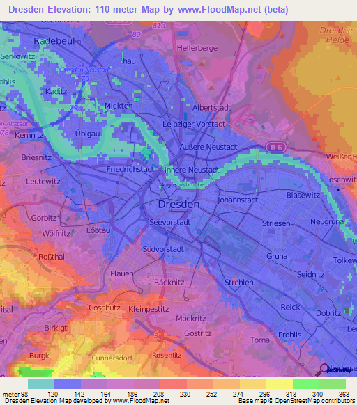Note:Please note that Dresden,Germany Elevation Map is in beta.