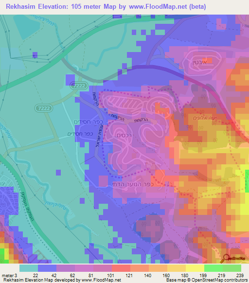 Note:Please note that Rekhasim,Israel Elevation Map is in beta.