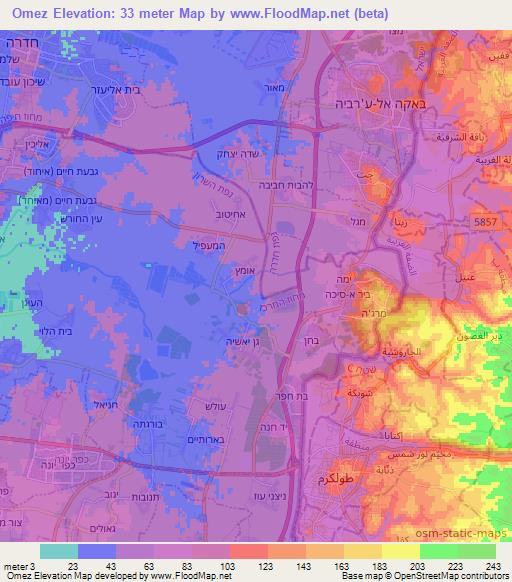Note:Please note that Omez,Israel Elevation Map is in beta.