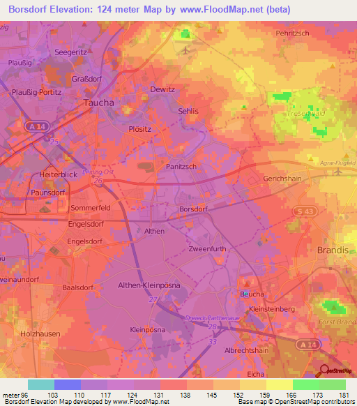 Note:Please note that Borsdorf,Germany Elevation Map is in beta.