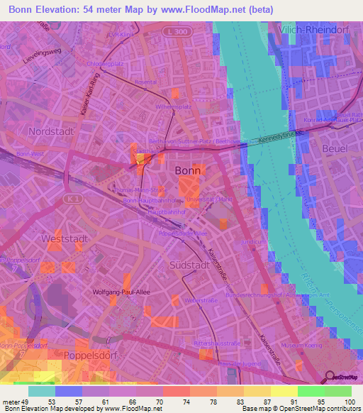 Note:Please note that Bonn,Germany Elevation Map is in beta.