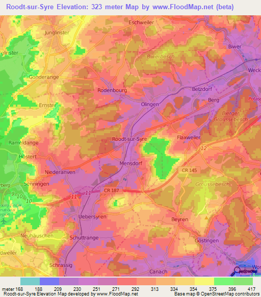 Note:Please note that Roodt-sur-Syre,Luxembourg Elevation Map is in beta.
