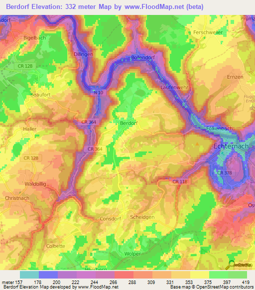 Note:Please note that Berdorf,Luxembourg Elevation Map is in beta.