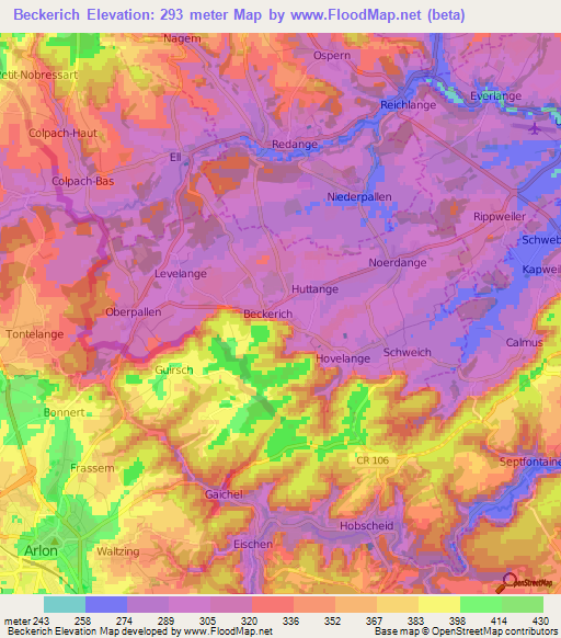 Note:Please note that Beckerich,Luxembourg Elevation Map is in beta.