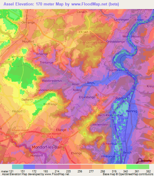 Note:Please note that Assel,Luxembourg Elevation Map is in beta.