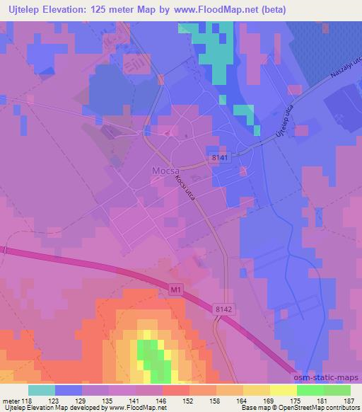 Note:Please note that Ujtelep,Hungary Elevation Map is in beta.