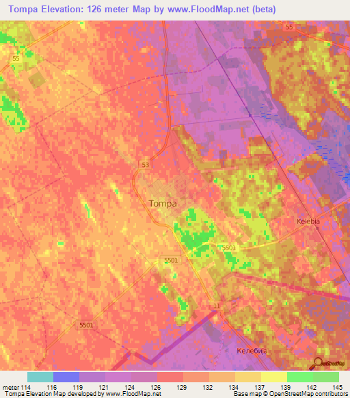 Note:Please note that Tompa,Hungary Elevation Map is in beta.