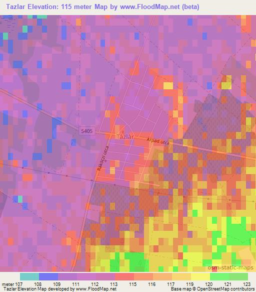 Note:Please note that Tazlar,Hungary Elevation Map is in beta.