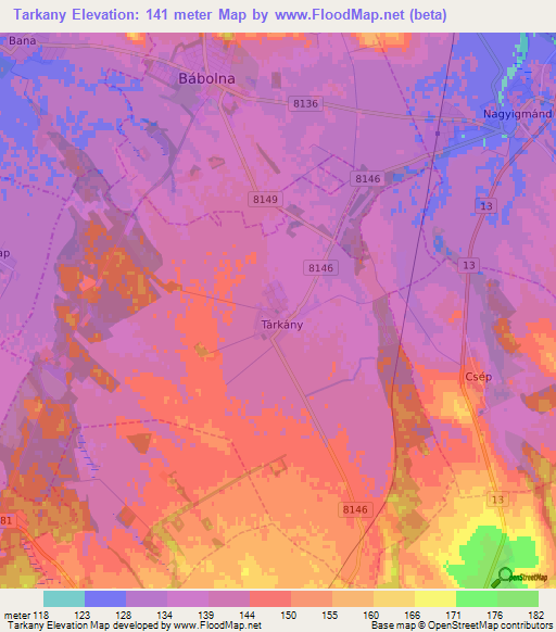 Note:Please note that Tarkany,Hungary Elevation Map is in beta.