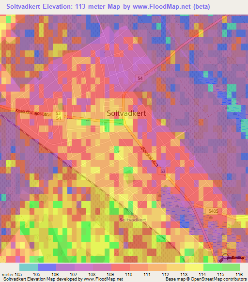 Below is the Elevation map of Soltvadkert,Hungary, which displays range of elevation with different colours.