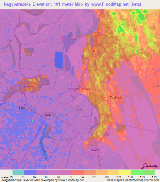 Note:Please note that Nagybaracska,Hungary Elevation Map is in beta.