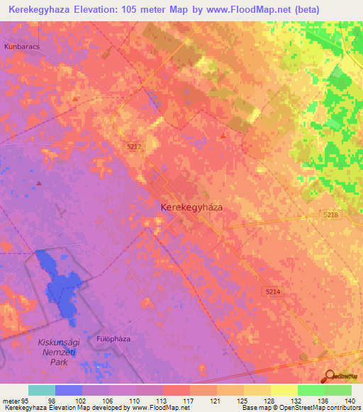 Below is the Elevation map of Kerekegyhaza,Hungary, which displays range of elevation with different colours.