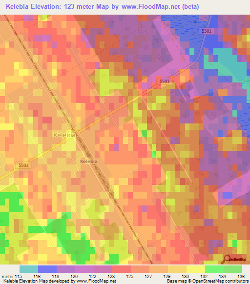 Below is the Elevation map of Kelebia,Hungary, which displays range of elevation with different colours.