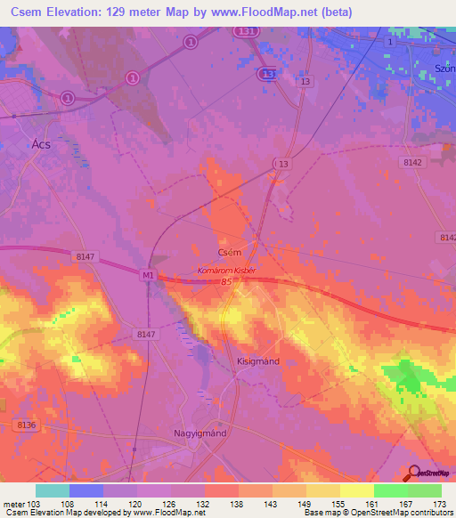 Note:Please note that Csem,Hungary Elevation Map is in beta.