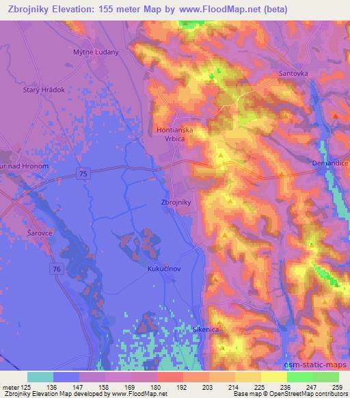 Zbrojniky,Slovakia Elevation Map
